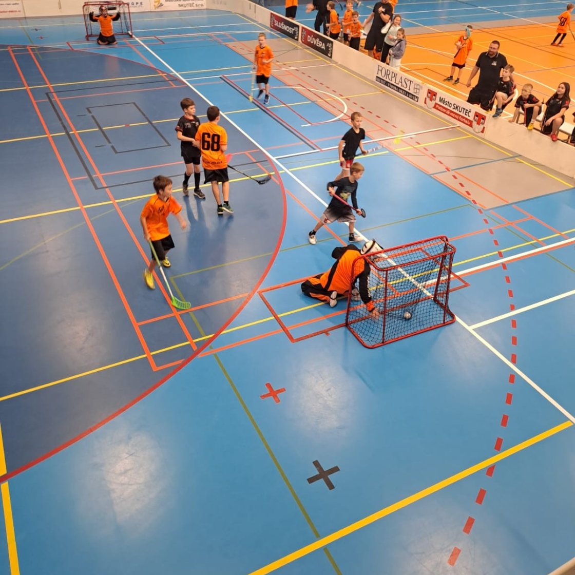 V sobotu čekalo naše elévy krásné sportovní dopoledne ve Skutči. Turnaj se vydařil po všech stránkách – skvělá atmosféra, nadšené děti a opravdu velká porce florbalového nadšení. Do Skutče jsme tentokrát vyrazili v rekordním počtu 19 hráčů, což je pro nás historicky jeden z nejvyšších počtů u této kategorie. Díky tomu jsme postavili dva týmy, které odehrály dohromady pět velmi povedených utkání.